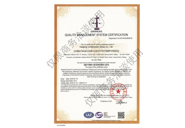 戴工建設(shè)集團(tuán)有限公司,創(chuàng)建于2009年,注冊資本9888萬元人民幣。公司位于北京市大興區(qū)。具有建委頒發(fā)的建筑裝飾裝修專業(yè)壹級,防水保溫工程專業(yè)壹級,建筑幕墻專業(yè)貳級,消防設(shè)施專業(yè)貳級,電子與智能化專業(yè)貳級,特種工程(結(jié)構(gòu)補(bǔ)強(qiáng))專業(yè)不分等級,建筑機(jī)電安裝專業(yè)貳級,環(huán)保工程專業(yè)貳級,鋼結(jié)構(gòu)專業(yè)貳級,建筑工程總承包貳級,建筑裝飾工程設(shè)計專項甲級,展覽陳列工程設(shè)計與施工壹級,展覽展示工程壹級...更多>>